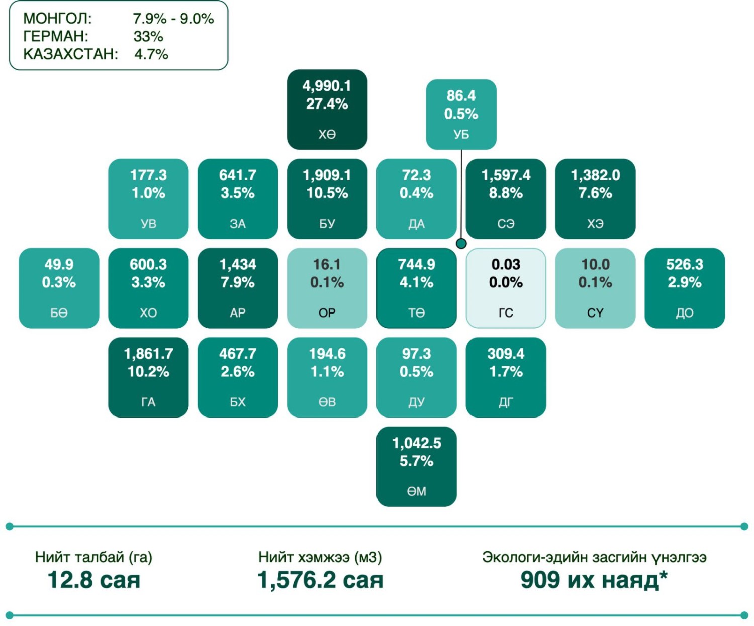 Азийн Хөгжлийн Банкны 2023 онд танилцуулсан судалгаагаар манай улс нийт 1,141,800 шоо метр мод бэлтгэж байгаагийн 66.8 хувь нь түлээний модны хэрэглээнд зориулагдаж байгаа бол дөнгөж 26 хувь нэмүү өртөг шингээсэн бүтээгдэхүүн үйлдвэрлэхэд зориулагдаж байна.