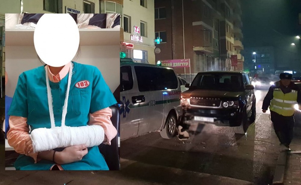 Өнгөрсөн шөнө яаралтай дуудлага хүлээн авч, өвчтөнийг эмнэлэг хүргэхээр явсан түргэний машиныг өвчтөний нөхөр мөргөж, дотор сууж явсан эмч нь гэмтэл авчээ.
