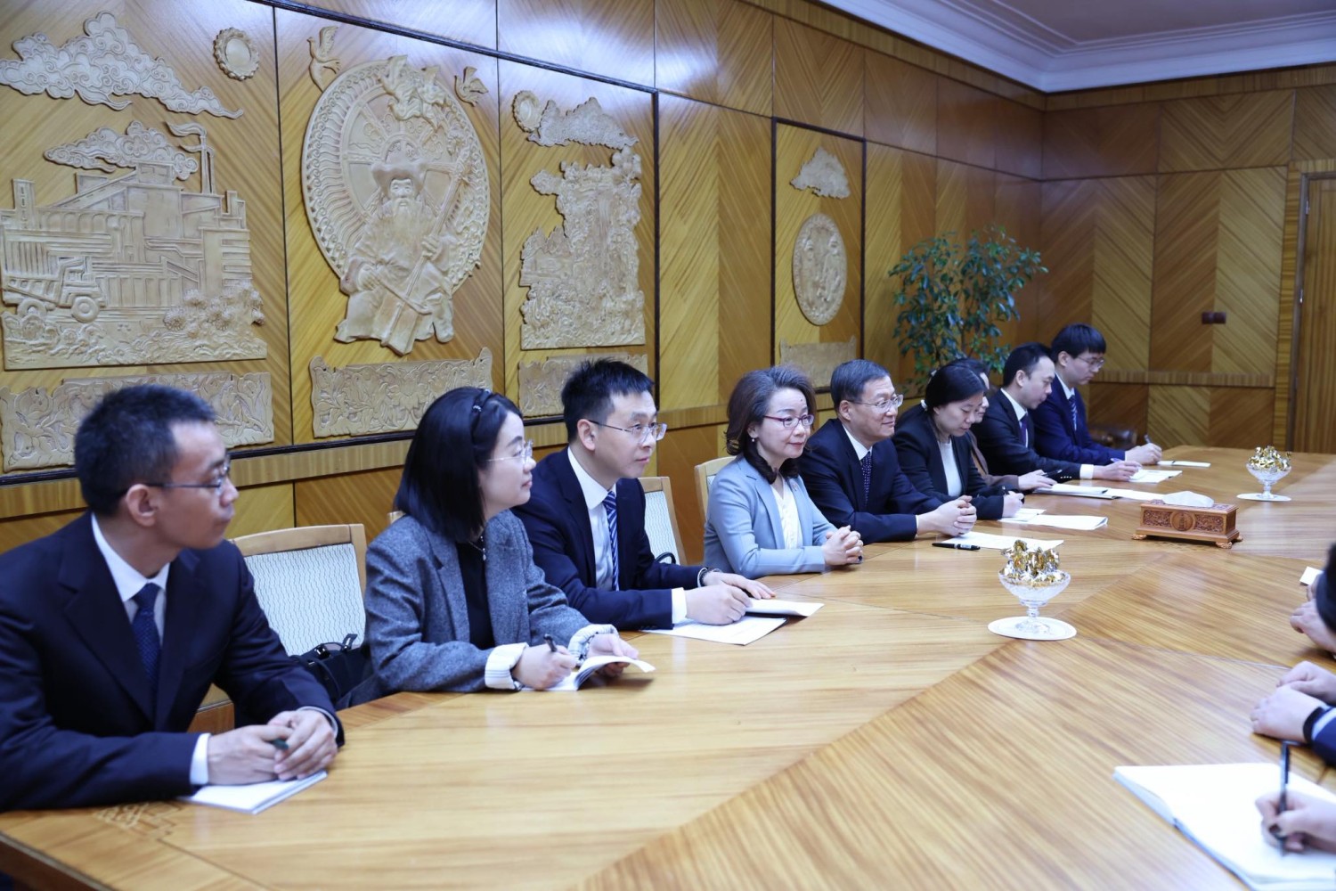 Уулзалтад БНХАУ-ын талаас Төв, Төрийн Байгууллагын Ажлын Хорооны Гүйцэтгэх дэд захирал (Сайд) Гуо Вэньчи, ХКН-ын ТХ-ны гадаад харилцааны яамны намын хорооны дэд дарга, сахилга батын шалгалтын хорооны дарга Дун Вэйхуа, Төв болон Улсын байгууллагуудын Ажлын хорооны тамгын газрын дэд дарга, багийн ахлагчийн туслах Шэнь Чуаньлян, ХКН-ын ТХ-ны ГХЯ-ны I газрын ерөнхий хэлтсийн дэд дарга Руань Руй тэргүүтэй төлөөлөгчид, мөн БНХАУ-аас Монгол Улсад суугаа Элчин сайд Шэн Минжуань болон Элчин сайдын яамны албаны хүмүүс оролцлоо.