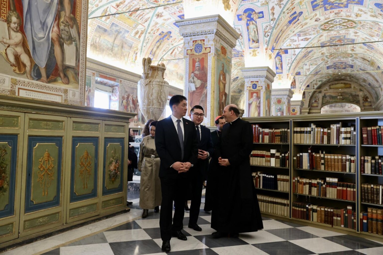 Ерөнхийлөгч Ухнаагийн Хүрэлсүх Гэгээн Ширээт Улсын төрийн тэргүүн Пап Арвандөрөвдүгээр Леогийн урилгаар тус улсад хийж буй төрийн айлчлалын үеэр Ватиканы Апостолын архив, номын санд зочиллоо.