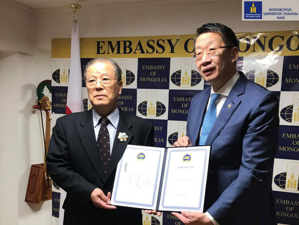 Япон дахь “Монгол төв” ТББ-ын удирдах зөвлөлийн дарга, МҮХАҮТ-ын Япон дахь салбар танхимын өргөмжит төлөөлөгч ноён Нишизава Такэшигэг Монгол Улсын Ерөнхийлөгчийн зарлигаар “Алтан гадас” одонгоор шагнасныг Токио дахь Монгол Улсын ЭСЯ-ны байранд гардуулж өглөө. Тэрээр Монгол, Япон хоёр улсын хооронд эдийн засаг, соёл, боловсрол, аялал жуулчлалын хамтын ажиллагааг хөгжүүлэхэд үнэтэй хувь нэмэр оруулсан эрхэм юм.