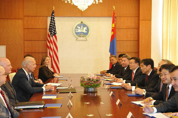 Монгол Улсын Ерөнхий сайд Сүхбаатарын Батболдын урилгаар Америкийн Нэгдсэн Улсын дэд Ерөнхийлөгч эрхэмсэг ноён Жозеф Байден манай улсад айлчлахаар ирлээ. Эрхэм зочны хөлөглөсөн онцгой үүргийн онгоц Улаанбаатар хотын “Чингис хаан” олон улсын нисэх буудалд 2011 оны 8 дугаар сарын 22-ны энэ өдөр 12 цагаас газардлаа.