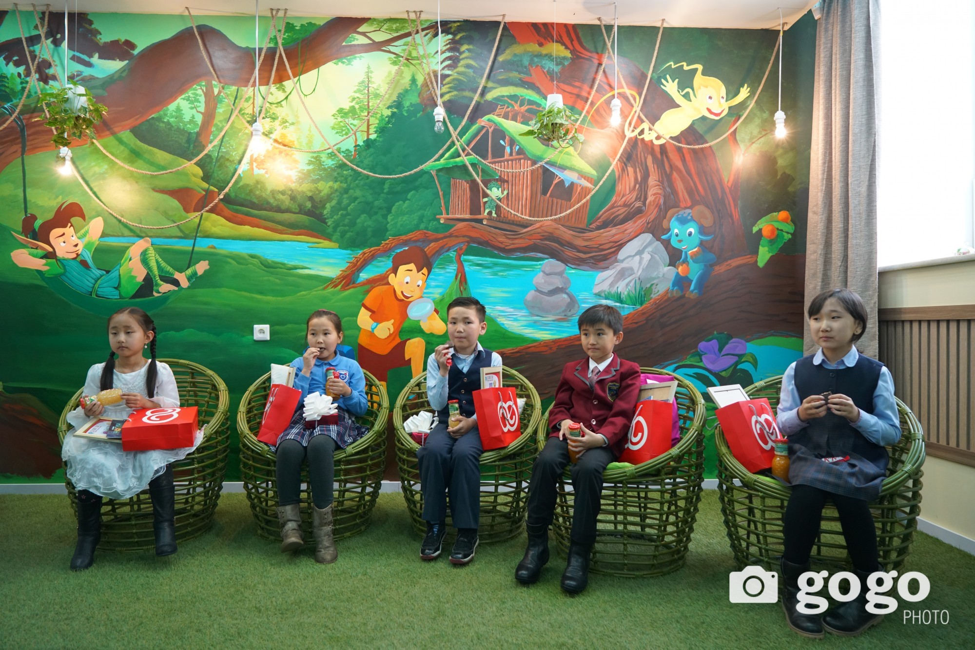 Т.Гантигмаа зурагтаа хүүхдүүд мод зүлгээ усалж, загас хооллож, хогоо цэвэрлэж байгаагаар дүрсэлжээ.