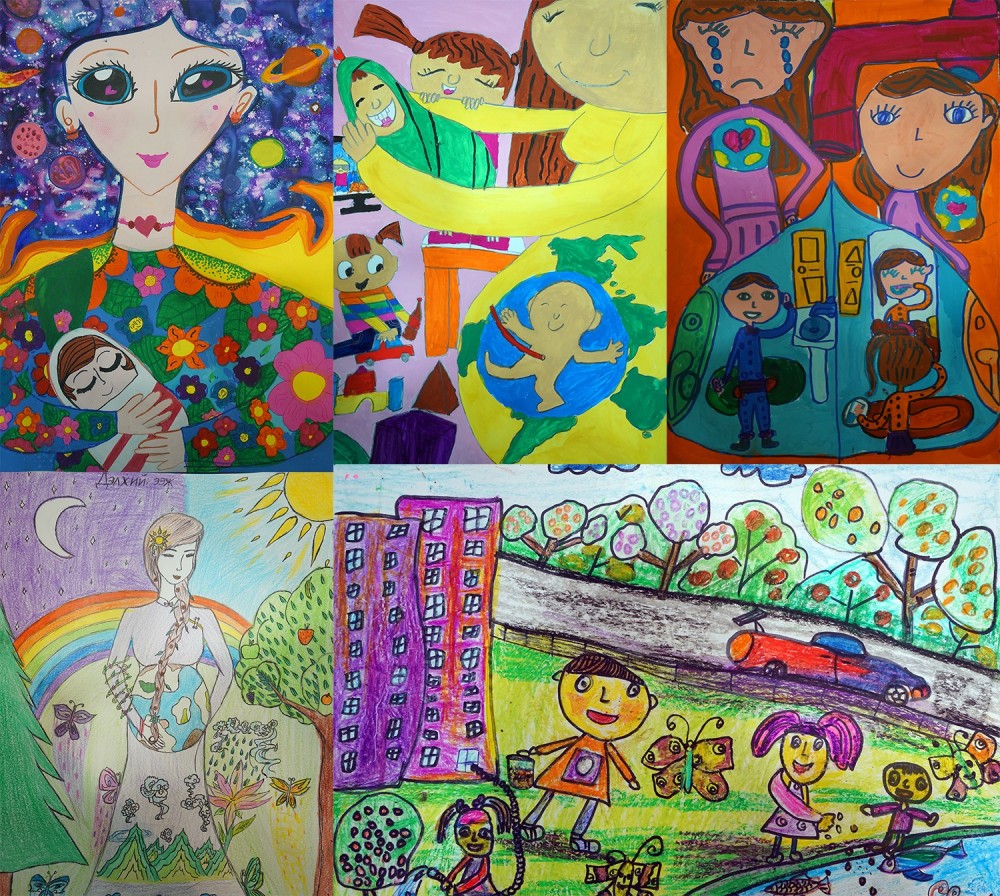 Харин хоёрдугаар ангийн хүүхдүүдээс бүтээлээрээ түрүүлсэн Б.Амархүүдөрвөн хүүхэдтэй ээжийг дүрсэлжээ. Ээж нь хүүхдээ тэвэрч буйгаар, хүүхэд тоглож байгааг зурсан байна.