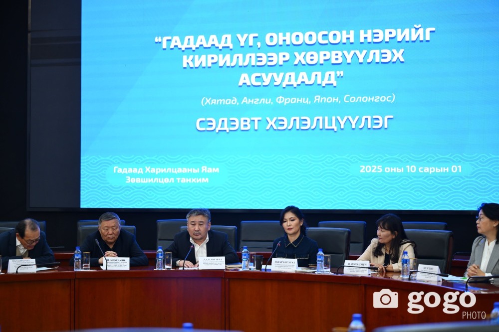 Гадаад харилцааны яаманд өнөөдөр (2025.10.01) “Гадаад үг, оноосон нэрийг кириллээр хөрвүүлэх асуудалд” сэдэвт хэлэлцүүлэг боллоо.
