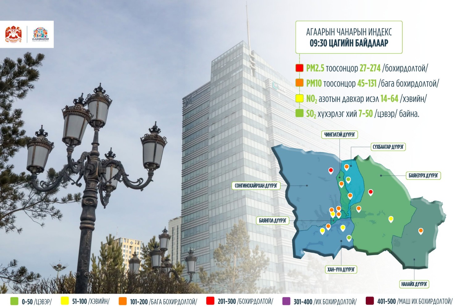 Нийслэлийн агаарын чанарын индекс 09:30 цагийн байдлаар: