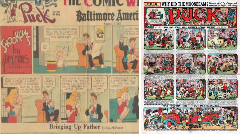 1949 - Питтсбургийн их сургуулийн лаборатор болон Нью-Юорк-н их сургууль хамтран комиксийг ашиглан сургалтын хөтөлбөр боловсруулж туршилтыг Puck - The Comic Weekly-г ашиглан америкийн зуу зуун ангиудад хичээл явуулж, туршилт хийж үзсэн. Туршилтад орсон ангиудын багш нараас асуухад 74% нь хичээл хийх эерэг сэдэл төрүүлж байсан, 79% нь хүүхдүүдийн оролцоог нэмэгдүүлж байсан гэсэн үр дүн гарсан.