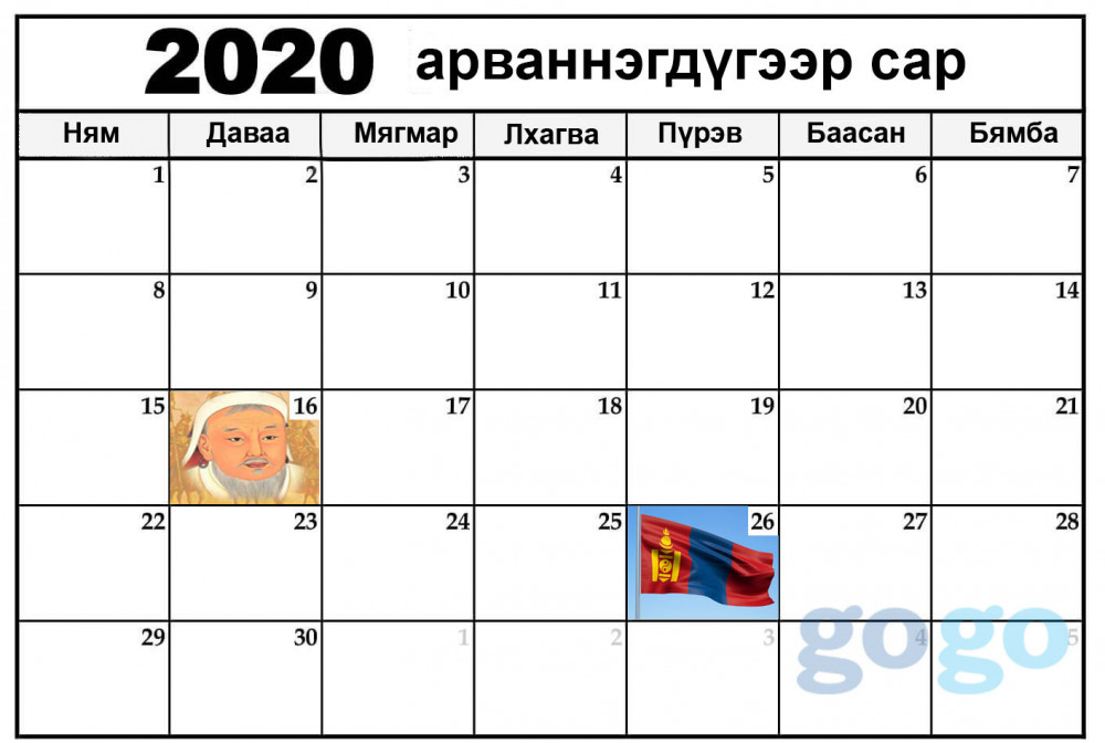 Энэ сард бүх нийтээр амрах хоёр ч өдөр тохиох аж. Тодруулбал, ирэх даваа гарагт буюу 16-нд Монгол бахархлын өдөр, 26-ны пүрэв гарагт Улс тунхагласан өдөр таарч БҮХ НИЙТЭЭР АМАРНА.