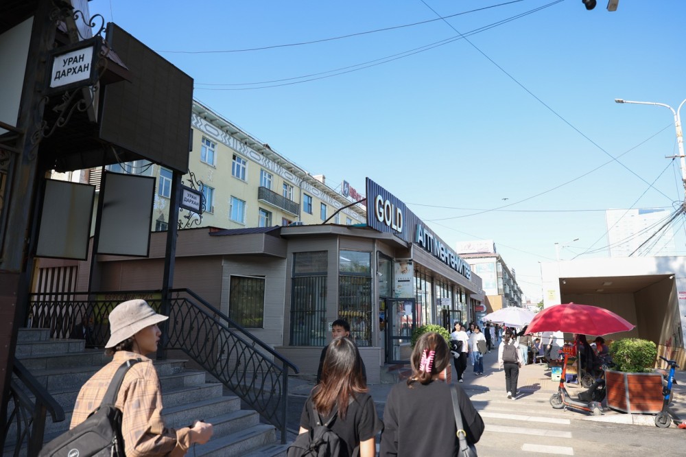 Уг нь тэнд зүлэг, цэцэг, мод байсан ч одоо төрөл бүрийн дэлгүүр, гуанз, гоо сайхны газрууд эгнэсэн. Эрээн мяраан самбар, хулдаасан хэвлэлүүд нь нүд ядраамаар.