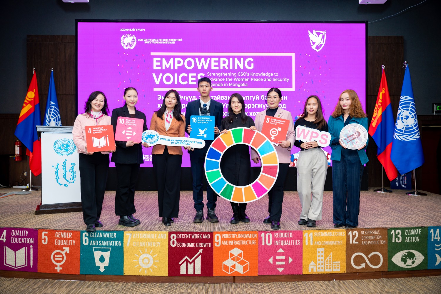 25 жилийн өмнө батлагдсан WPS хөтөлбөрийн тухай иргэний нийгмийн байгууллагын төлөөлөл болон олон нийтийн мэдлэгийг нэмэгдүүлэх, WPS-ийг Монгол Улсад хэрэгжүүлэх Үндэсний Үйл Ажиллагааны Төлөвлөгөөнд олон нийтийн дуу хоолойг хүргэх зорилгоор хэрэгжсэн Empowering Voices хөтөлбөрт энх тайван, тогтвортой хөгжил, жендэрийн тэгш байдлын төлөө үйл ажиллагаа явуулж буй иргэний нийгмийн байгууллагуудын төлөөлөл болон хувь хүн бүхий 80 оролцогч нийслэл, орон нутгаас хамрагдлаа.