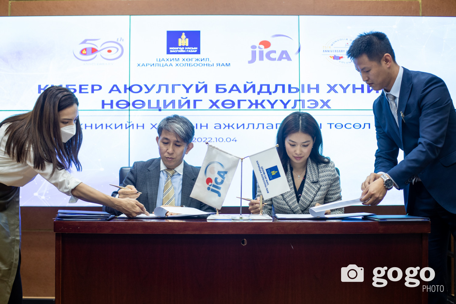 Цахим хөгжил, харилцаа холбооны яам /ЦХХХЯ/, ЖАЙКА-гийн Монгол дахь төлөөлөгчийн газартай хамтран хэрэгжүүлэх “Кибер аюулгүй байдлын хүний нөөцийг хөгжүүлэх төсөл“-ийн үндсэн баримт бичигт гарын үсэг зурах ёслол өчигдөр тус яаманд боллоо. Төсөл хэрэгжүүлэх үндсэн баримт бичигт ЦХХХ-ны Дэд сайд Б.Болор-Эрдэнэ, ЖАЙКА-гийн Монгол дахь төлөөлөгчийн газрын дарга Танака Шиничи нар гарын үсэг зурж баталгаажуулав.