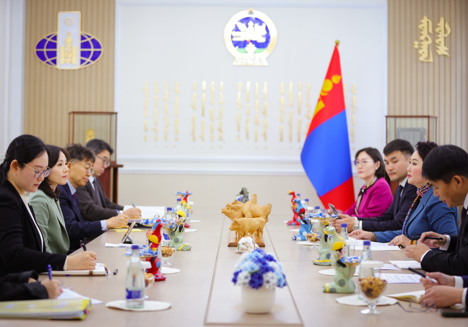 Гадаад харилцааны сайд Б.Батцэцэг Монгол Улс, БНСУ-ын Засгийн газар хоорондын Хамтарсан хорооны IX хуралдаанд оролцож буй тус улсын Гадаад хэргийн дэд сайд Ким Жин А-г хүлээн авч уулзав.