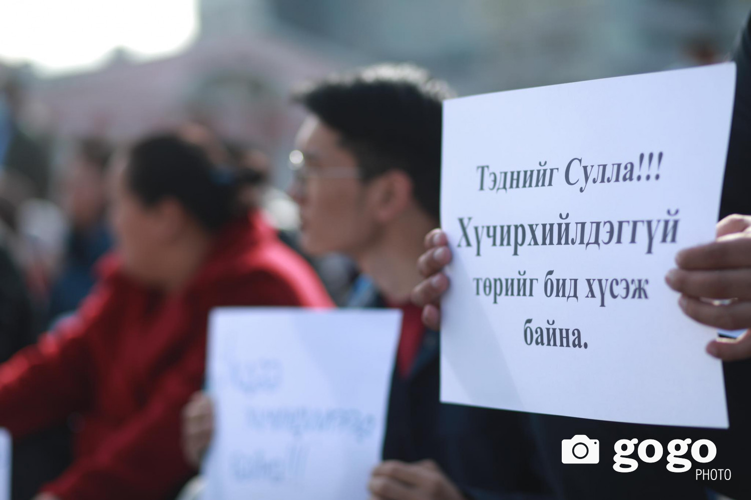Өчигдөр эхлүүлсэн иргэдийн жагсаал үүр цайтал үргэлжилсээр намжсан. Тэгвэл өнөө өглөөний 08.00 цагт ээлжийн ажлаа тарж ирсэн иргэд Төв талбайд уриа үг бүхий лоозонгууд барьж, жагсаалыг үргэлжлүүлж байна.