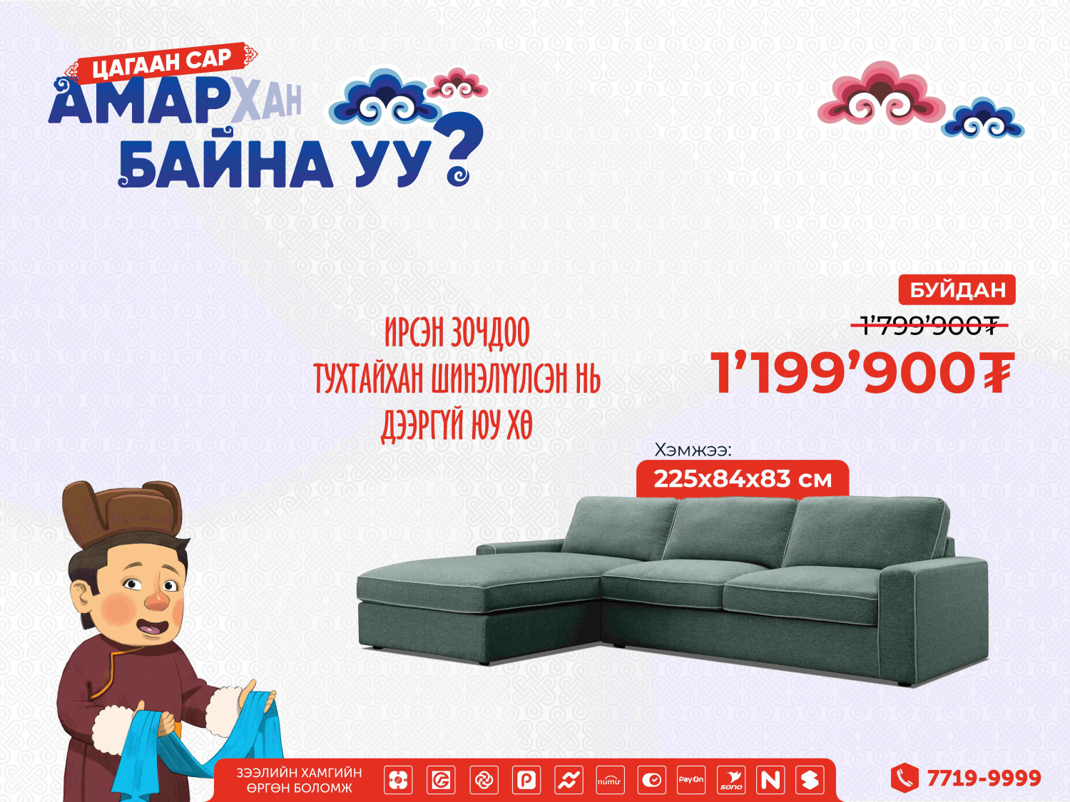 Айлчлан ирсэн зочид гийчдээ тав тухтай суулган, тансаг тавтай шинэлүүлэх хямдралтай бэлэгтэй тавилганууд Нэкст мебелд хамгийн өргөн сонголттойгоор цагаан сарын ОНЦГОЙ ХЯМДРАЛТАЙ үнээр худалдаалагдаж байна.