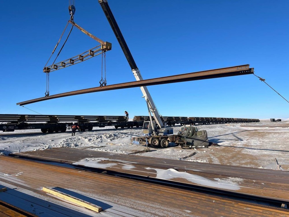 Тус төмөр замын төслийн дээд бүтцийн ажилд ашиглагдах материалын тээвэрлэлт, тэдгээрийг хүлээн авах болон талбайд тараан байршуулах ажлыг улирлын нөхцөл байдлаас үл хамааран тасралтгүй үргэлжлүүлж байна.