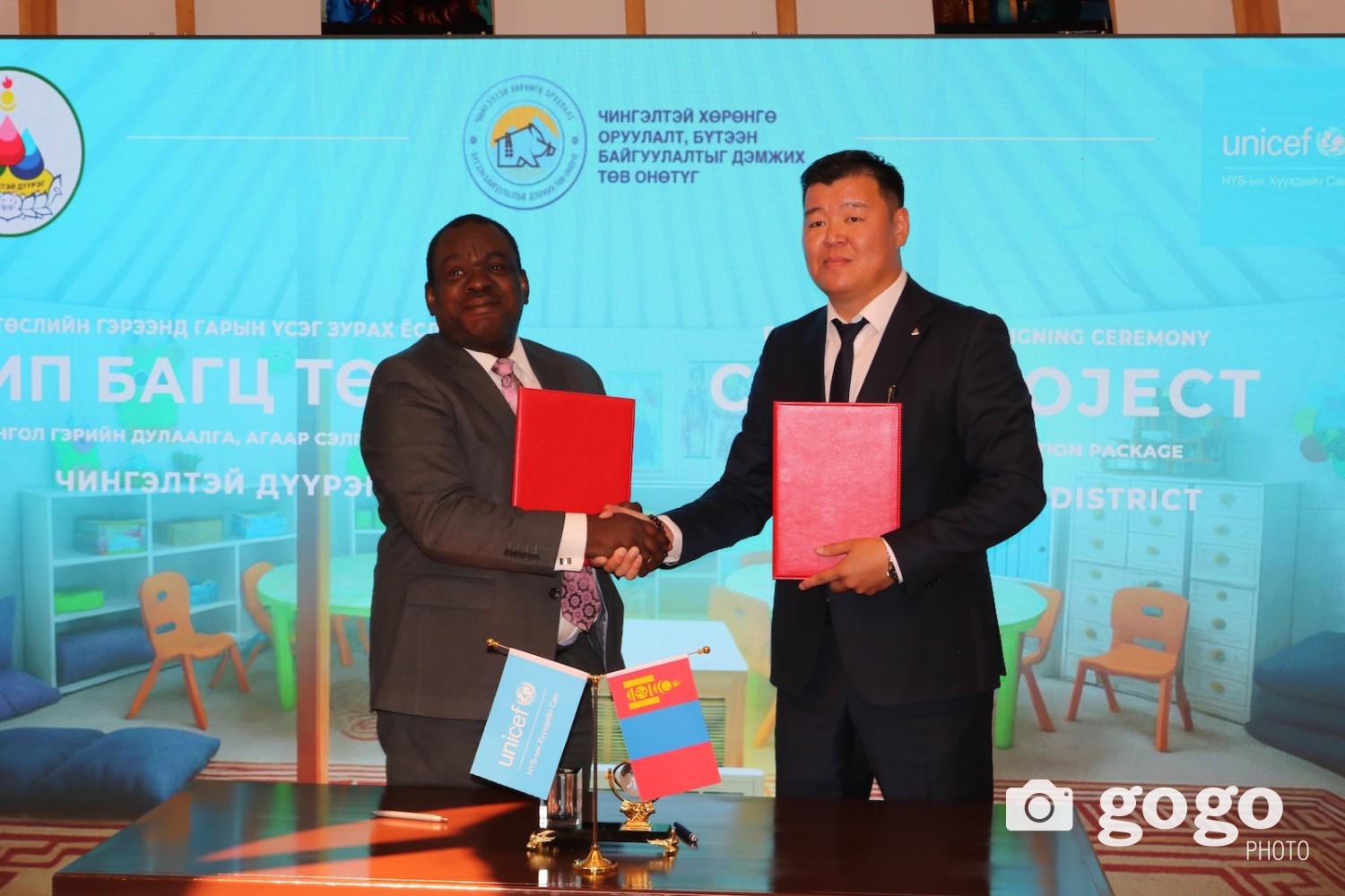 Гарын үсэг зурах үйл ажиллагаанд НҮБ-ын Хүүхдийн Сангийн Суурин төлөөлөгч Эваристе Коуасси-Комлан, Чингэлтэй дүүргийн Засаг дарга Н.Мандуул болон Хөрөнгө оруулалт, бүтээн байгуулалтыг дэмжих төвийн захирал Э.Онон нар оролцлоо.