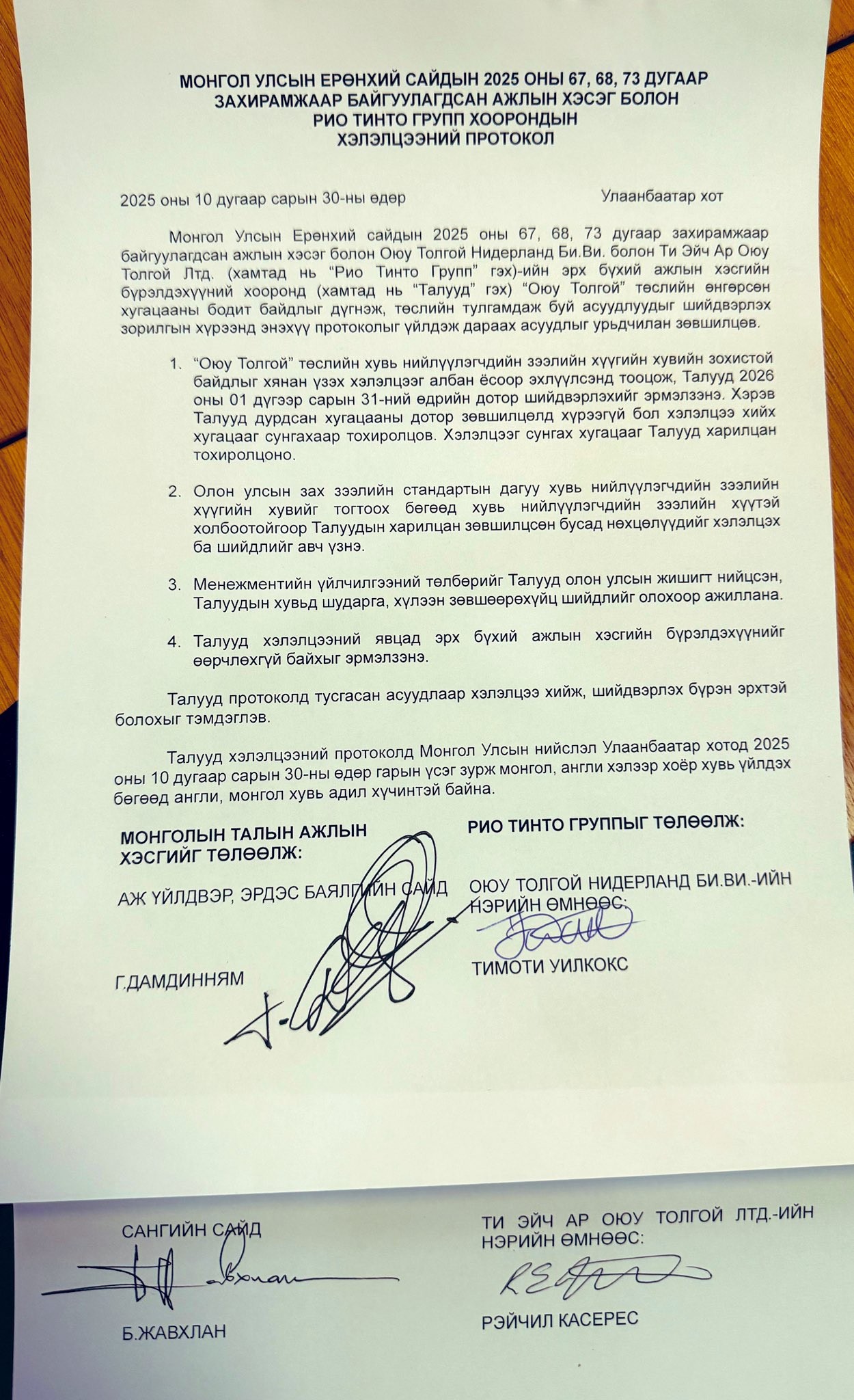 Монгол Улсын Засгийн газар болон “Рио Тинто” группийн хооронд Оюу Толгойн хөрөнгө оруулалтын гэрээтэй холбоотой шинэ шатны хэлэлцээ эхэлсэн.