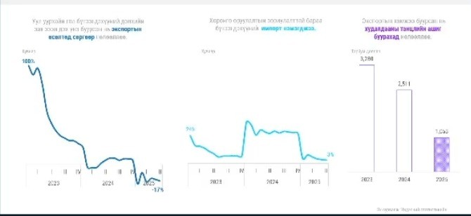 Уул уурхайн бүтээгдэхүүнээс авах татварын орлого 12.3 хувиар буурсан нь төсвийн орлого буурахад нөлөөлжээ. Урсгал зардлыг өсөлт нь төсвийн зарлагын дийлэнх хувийг эзэлсэн байна. Мөн үндсэн тэнцэл алдагдалтай гарч, төсвийг алдагдлын дарамт нэмэгджээ.