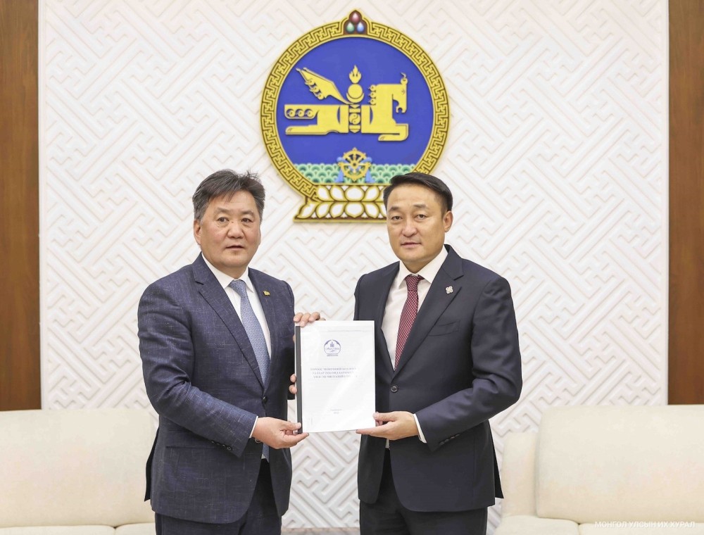 Монгол Улсын Их Хурлын дарга Д.Амарбаясгаланд өнөөдөр (2025.09.30) Монголбанкны Ерөнхийлөгч Б.Лхагвасүрэн Төрөөс мөнгөний бодлогын талаарх 2026 онд баримтлах үндсэн чиглэлийн төслийг өргөн мэдүүлэв.