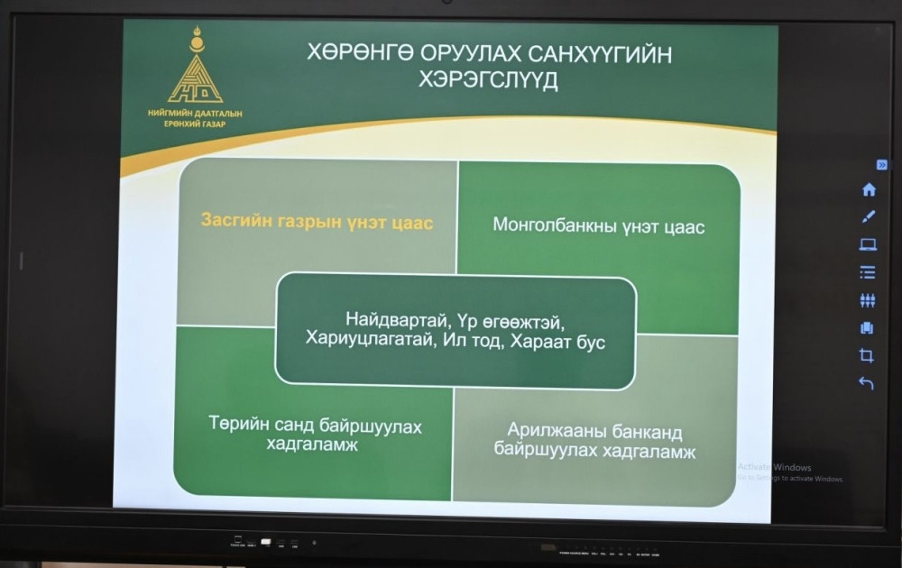 - Төрийн сангийн нэгдсэн дансанд байршуулах мөнгөн хадгаламж,
