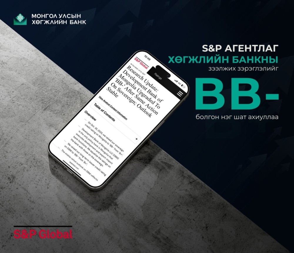 Олон улсын зээлжих зэрэглэл тогтоогч S&P агентлаг 2025 оны аравдугаар сарын 30-ны өдөр Монгол Улсын Хөгжлийн банкны урт хугацааны зээлжих зэрэглэлийг “B+”-ээс “BB-” болгон ахиулж, төлөвийг тогтвортой гэж үнэллээ.