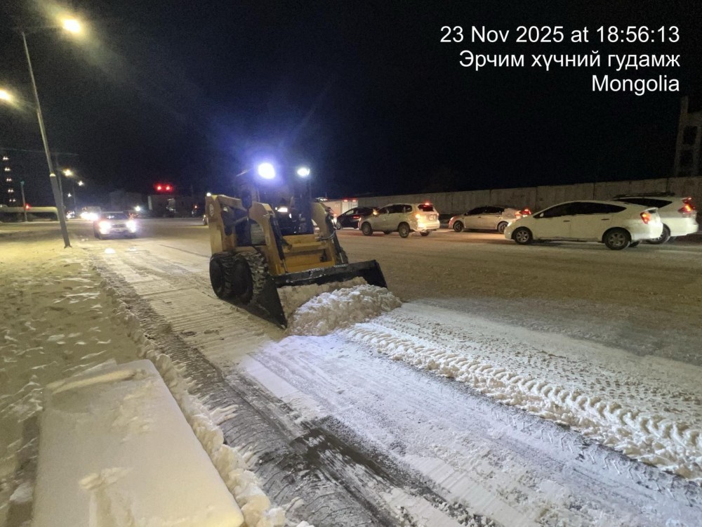 Мөн Баянгол дүүргийн хэмжээнд 06:00 цагийн байдлаар нийтийн эзэмшлийн 62 гудамж, 846.420 ам метр зам талбайн цэвэрлэгээ үйлчилгээний 8 байгууллагын 81 ажилтан цэвэрлэж байна. Хариуцсан авто зам болон явган зам дээр халтиргаа гулгаа үүсэхээс урьдчилан сэргийлэн 11 тонн бодис, 20 тонн давс цацжээ.