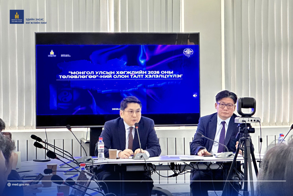 Тус яамны Хөгжлийн нэгдсэн бодлого, төлөвлөлтийн газрын дарга Ц.Эрдэнэбат “Улсын хөгжлийн 2026 оны төлөвлөгөө”-ний төсөл, хөгжлийн бодлого, төлөвлөлтийн талаар танилцуулсан байна.