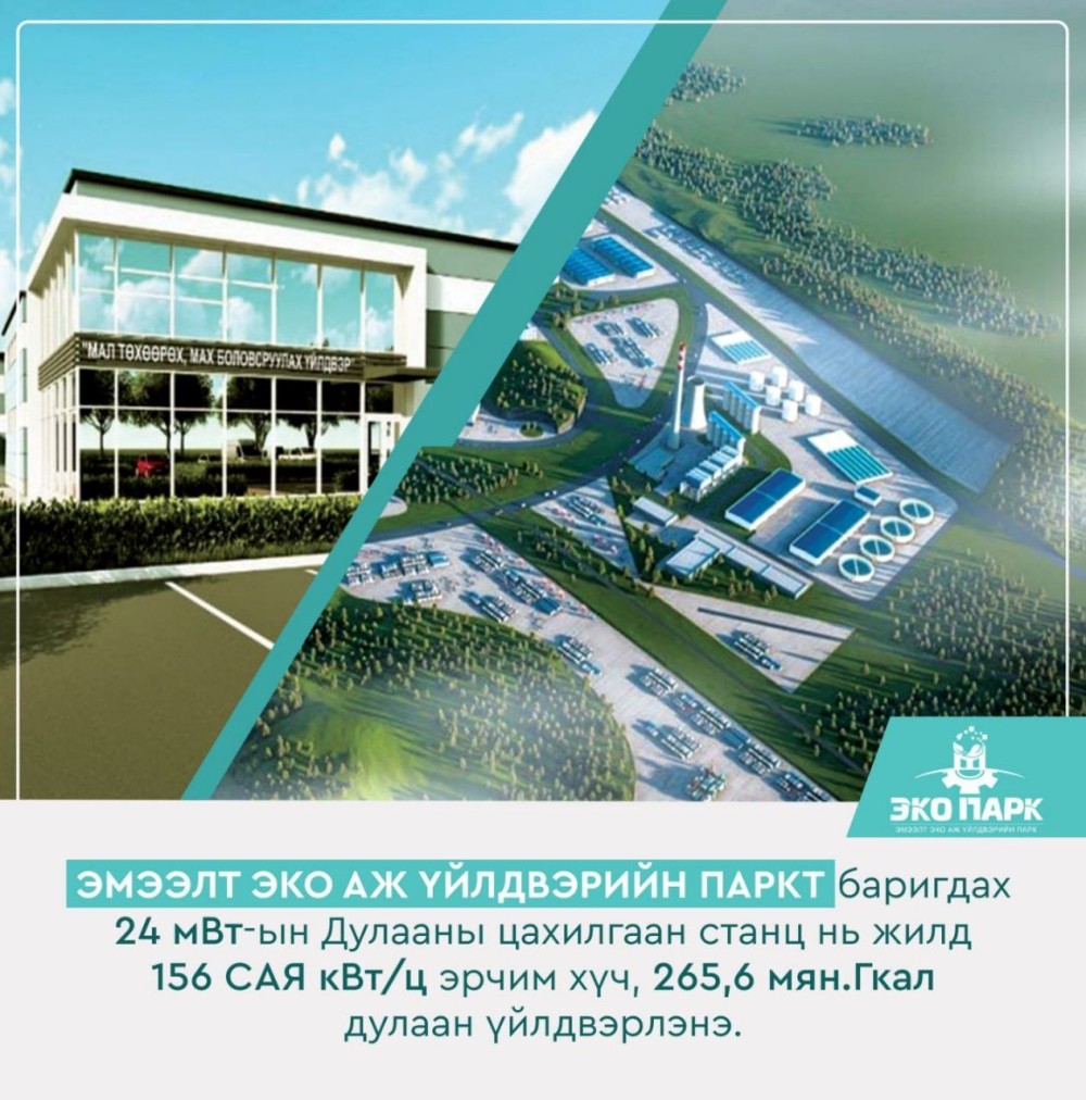 Тус паркийг цахилгаан, дулааны эрчим хүч, үйлдвэрийн технологийн уур, хэрэгцээний халуун усаар хангах зорилгоор 24 МВт-ын дулааны цахилгаан станц барина. Тус дулааны цахилгаан станцын зураг төсвийг энэ онд дуусгаж, 2026 онд барилга угсралтыг эхлүүлж, хоёр жилийн хугацаанд ашиглалтад оруулахаар төлөвлөжээ.