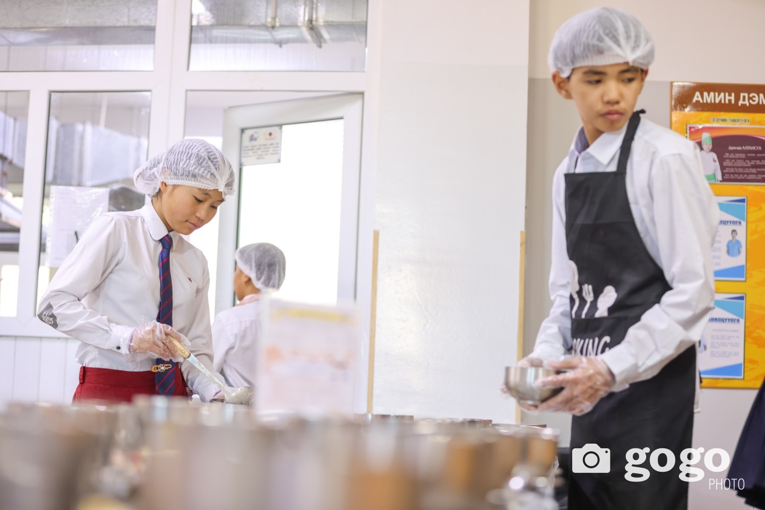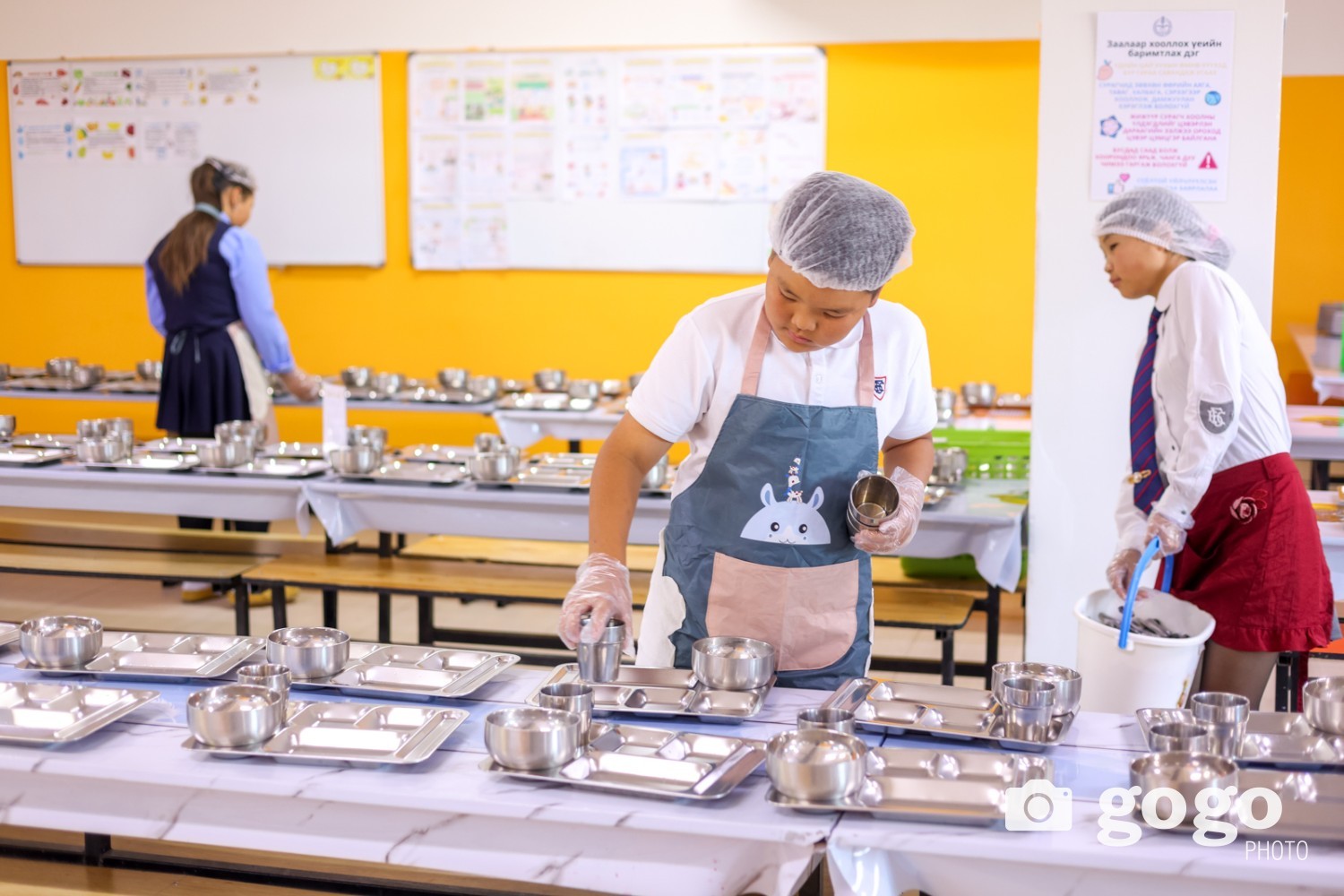 Жижүүр сурагчид цайны үеэр ээлжилж үйлчилдэг байна. Тодруулбал ээлж ээлжээр хормогч, малгайгаа өмсөөд ширээ засаж, хоол цайгаа тавагладаг. Энэ үеэр ширээ засаж байсан 6 дугаар ангийн сурагч Ө.Бат-Эрдэнэ "Нэг хүүхэд хоёр өдөр дараалан жижүүр хийдэг. Өнөөдөр миний хоёр дахь өдөр. Манай сургуулийн үдийн хоолнууд их гоё амттай, би цуйванд илүү дуртай. Манай ангийнхан Хүн ба орчин хичээлийн хүрээнд сургуулийн гадаах талбайд ногоо тарьж юм. Би тэндээс сурсан төмс тарих аргаа өвөөдөө заагаад, өвөө бид хоёр хашаанд нь энэ жил төмс тарьсан. Удахгүй хураана" хэмээн хэвлүүхэн ярив.
