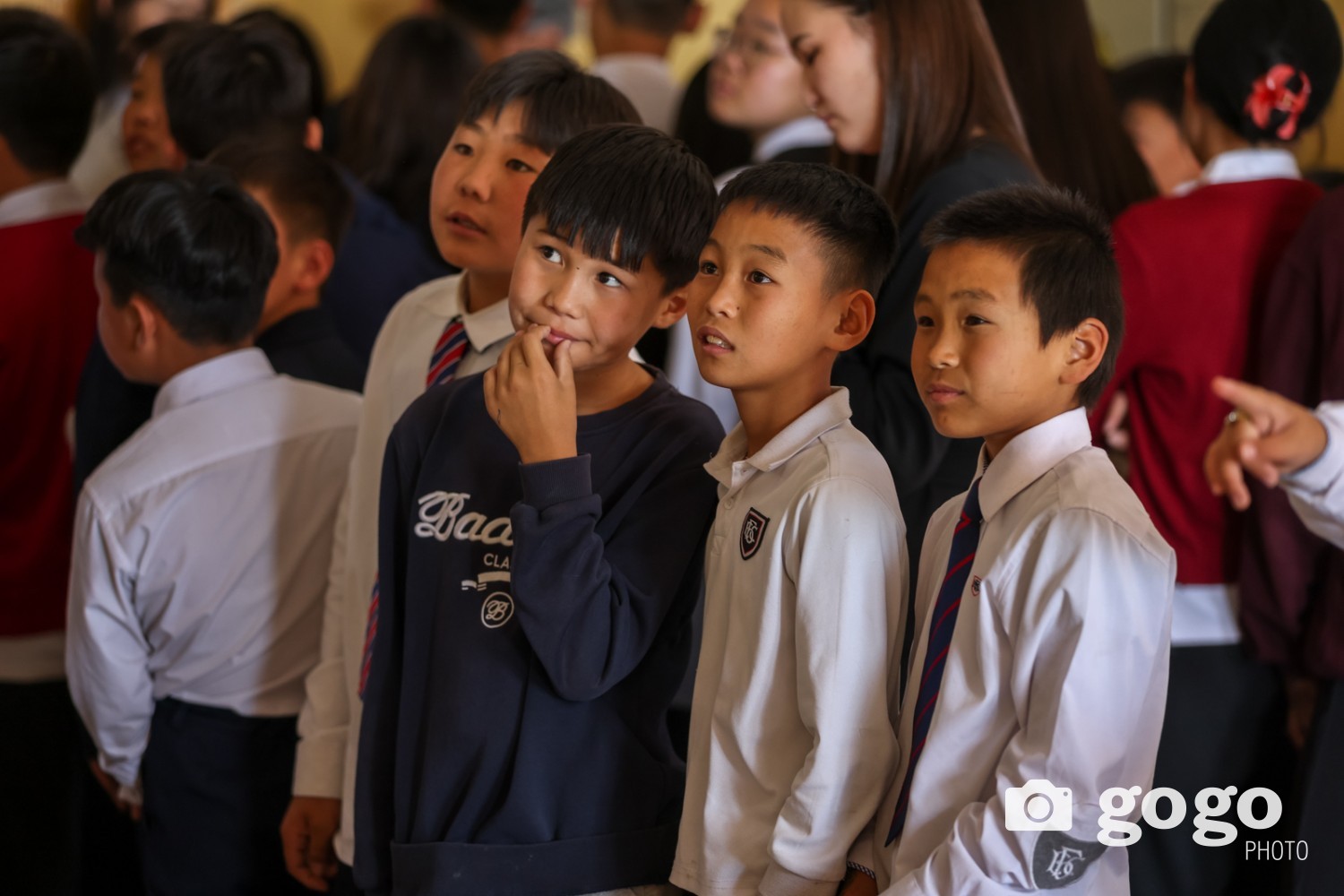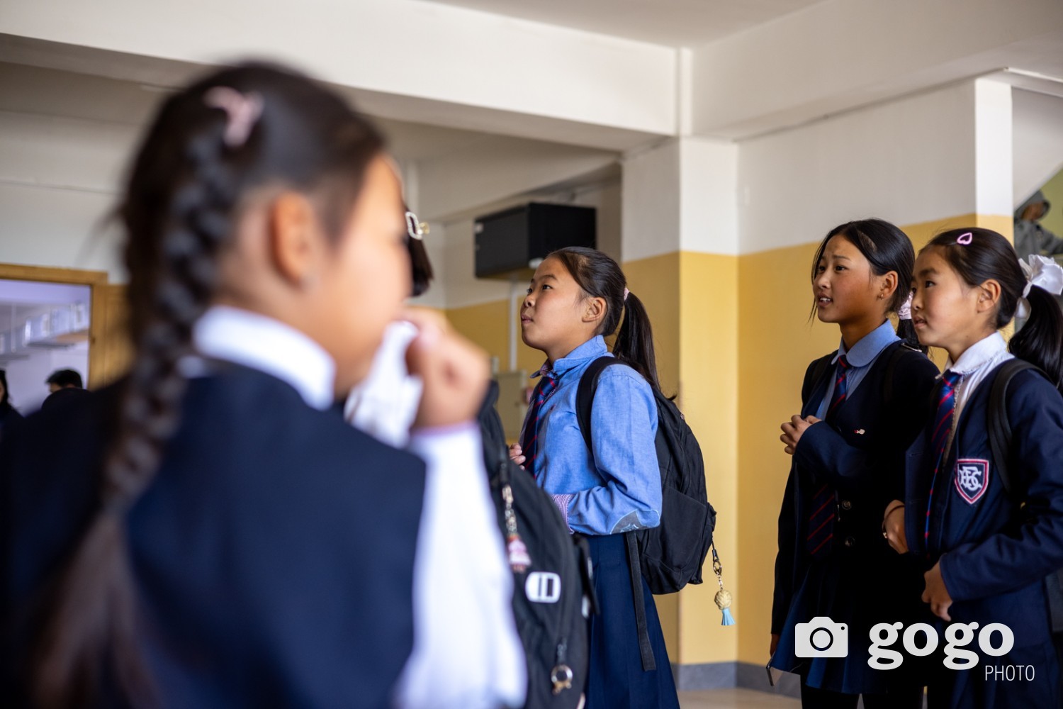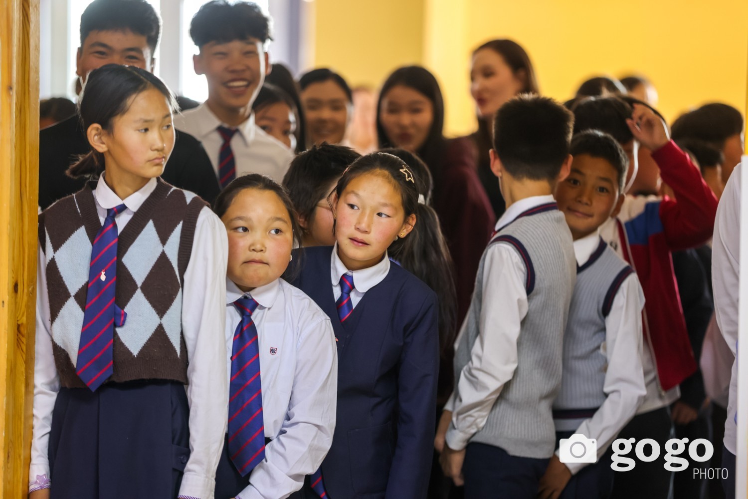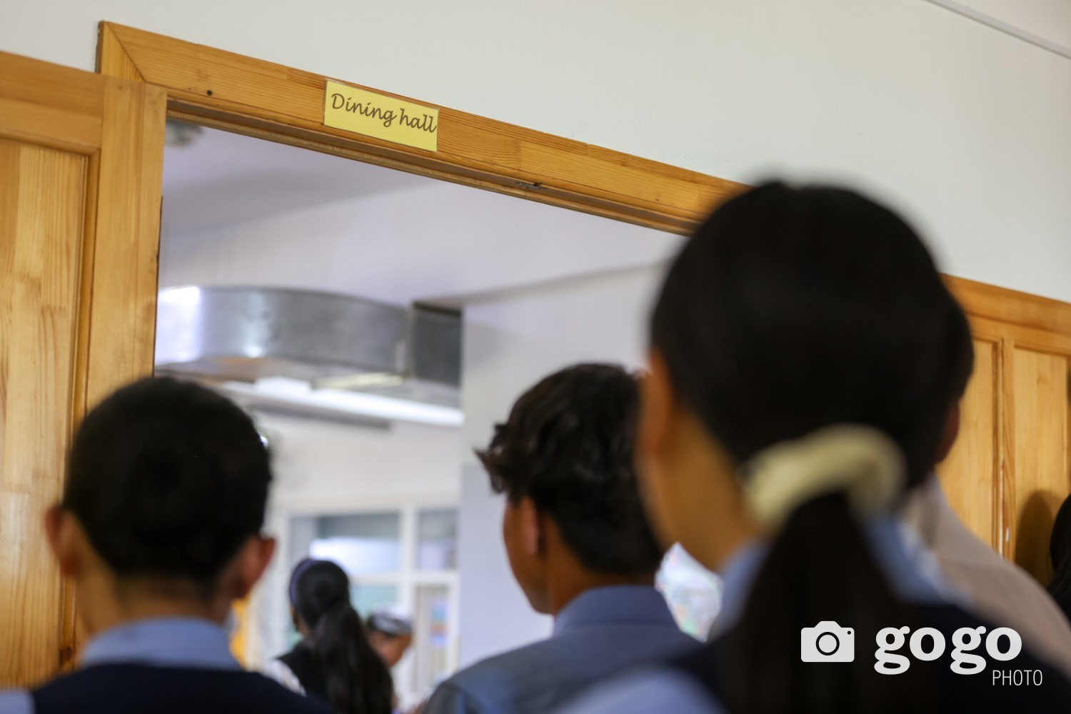 Сургуулийн хоолны танхимын үүдэнд жагсан зогсох сурагчид их үдийн завсарлагаанаар хоолондоо орохоор бэлтгэж буй нь энэ. Харин энэ зуур жижүүр сурагчид тэдний ширээг бэлтгэнэ.