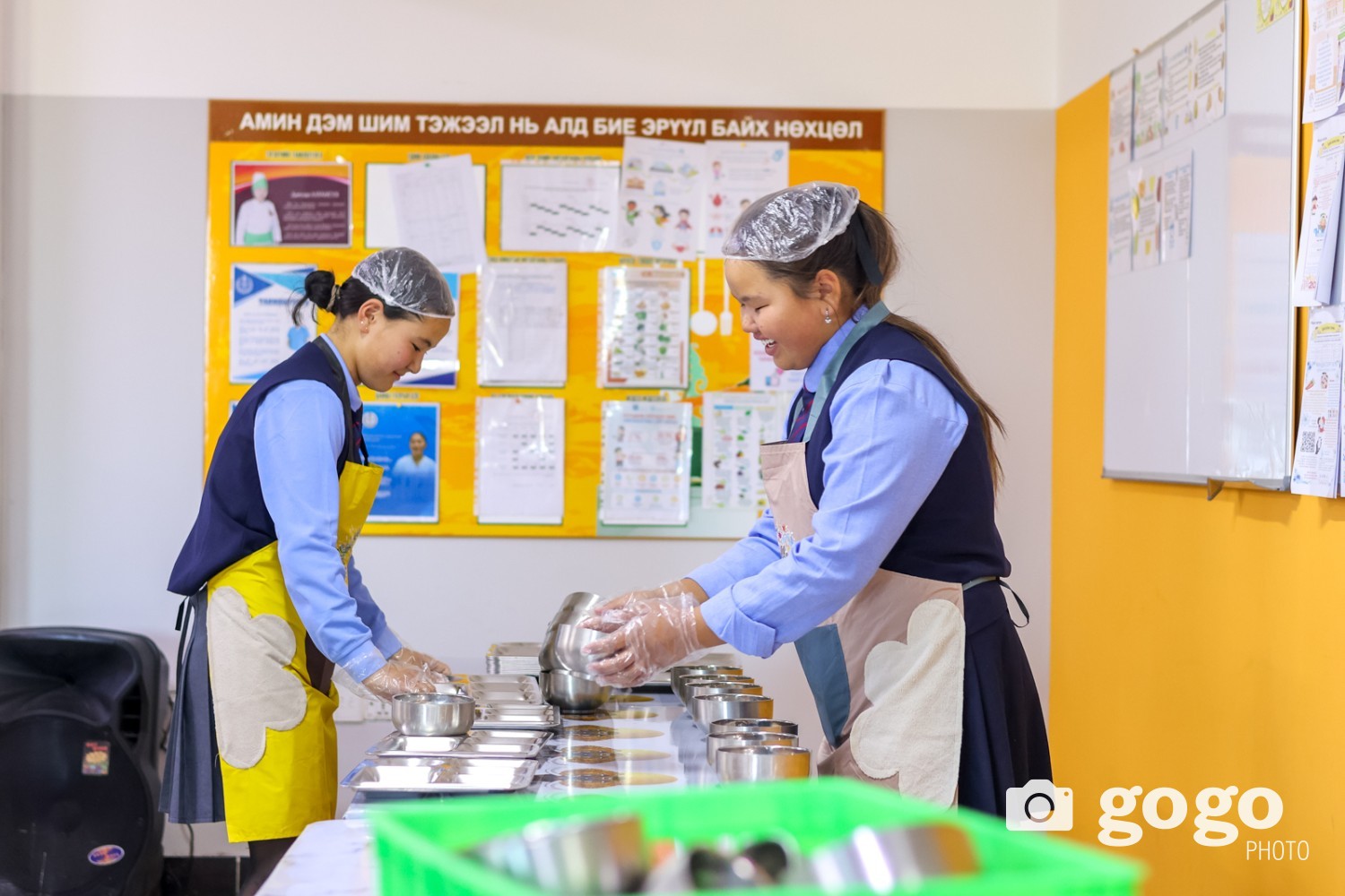- Манай хоол үйлдвэрлэлийн тоног төхөөрөмжийн шинэчлэлийг төслийн хүрээнд хийсэн. Ингэснээр хоолоо олон төрлөөр, цаг хугацааг ч хэмнэсэн байдлаар хийх таатай нөхцөлийг бүрдүүлсэн. Бид том, жижиг нийлсэн 1000 гаруй сурагчийн үдийн хоол хийдэг. Мөн төслийн хүрээнд хоол үйлдвэрлэл, бэлтгэлийн маш олон төрлийн сургалтад хамрагдсан. Тухайн мэдлэг, мэдээлэл дээрээ үндэслэн өөрсдөө ахиж дэвших, шим тэжээлийн талаар судлах, хүүхэд, эцэг эхчүүдэд энэ талаарх ойлголт олгох зэрэг давуу талууд гарч ирсэн. Олон сургалтад хамрагдаж, сайн тоног төхөөрөмжтэй болсон тул сурагчийн үдийн хоол үйлдвэрлэлээр аймагтаа нэг алхмын өмнө явж байгаа гэж боддог ш дээ. /инээв/