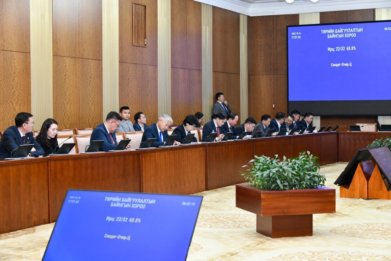 Улсын Их Хурлын Төрийн байгуулалтын байнгын хорооны өчигдрийн (2025.10.16) хуралдаан 16 цаг 59 минутад Улсын Их Хурлын 22 гишүүн хүрэлцэн ирснээр 68.8 хувийн ирцтэй эхэлжээ.