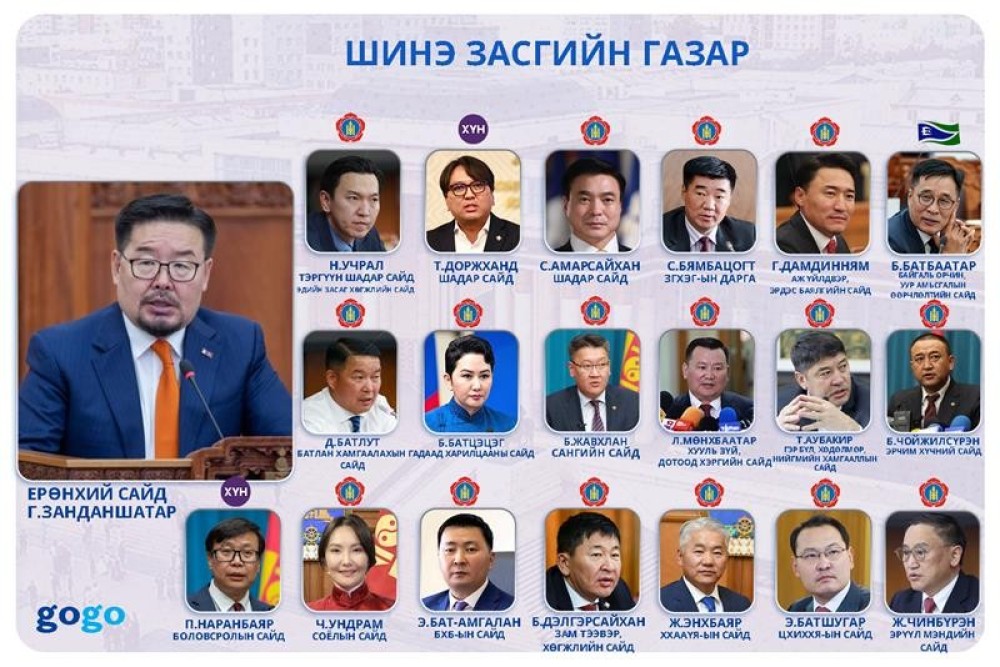 Ерөнхий сайд Г.Занданшатар Засгийн газрын бүрэлдэхүүнээ өчигдөр УИХ-ын чуулганд танилцуулж, шинэ сайд нар тангаргаа өргөсөн.