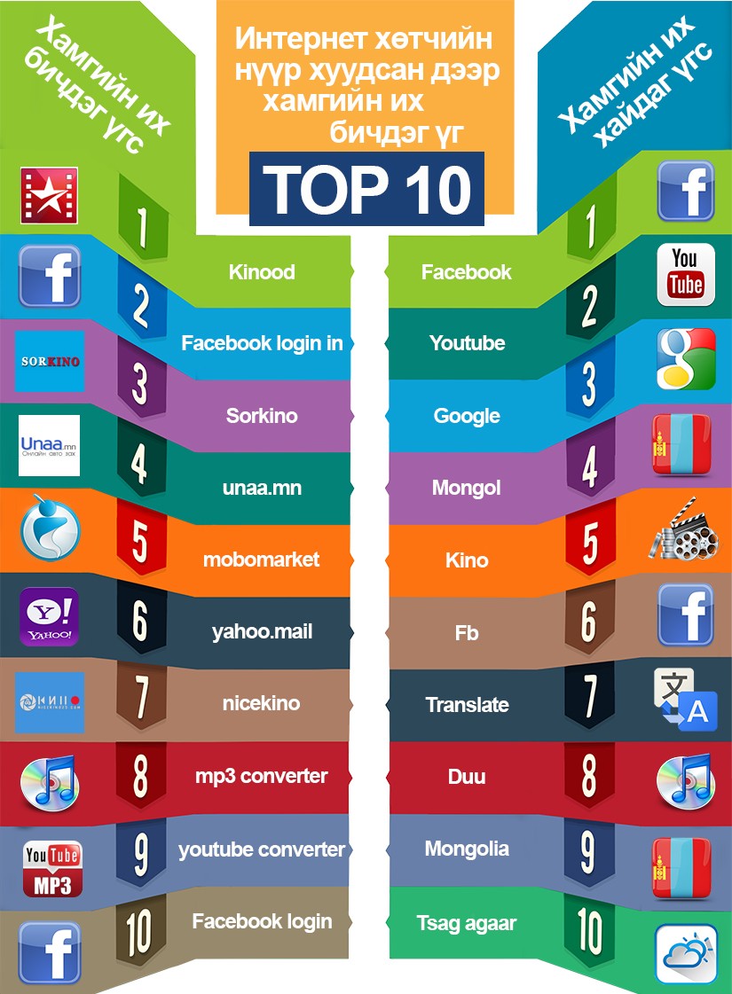 Харин Монголчууд бид хайлтын системд ямар үгсийг хамгийн их оруулдаг талаар инфографикийг хүргэж байна.
